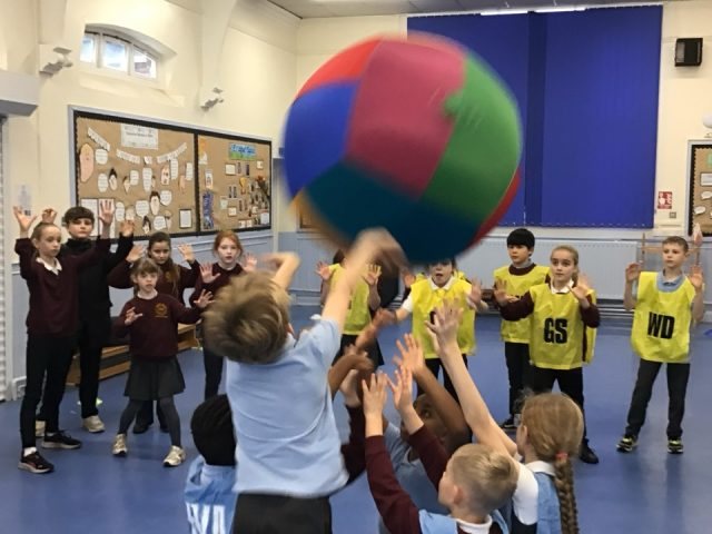 Last Friday, we had 2 sports coaches teach us a sport called ‘Kin Ball’. Kin ball is a game played with a HUGE ball and 4 teams. One team has the ball and 5 people crouch down to hold the ball and then one person (the pusher) calls out a colour and smashes the ball. The chosen coloured team then has to work as a team to try and stop the ball hitting the floor. If they manage it, they get a point. If they don’t, the other team gets a point.