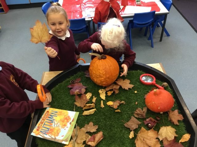 As autumn arrived, we’ve been observing seasonal changes and getting stuck into sensory exploration with our autumn-themed tuff tray. We’ve painted pumpkins, played in crunchy autumn leaves and talked about how the weather is changing.