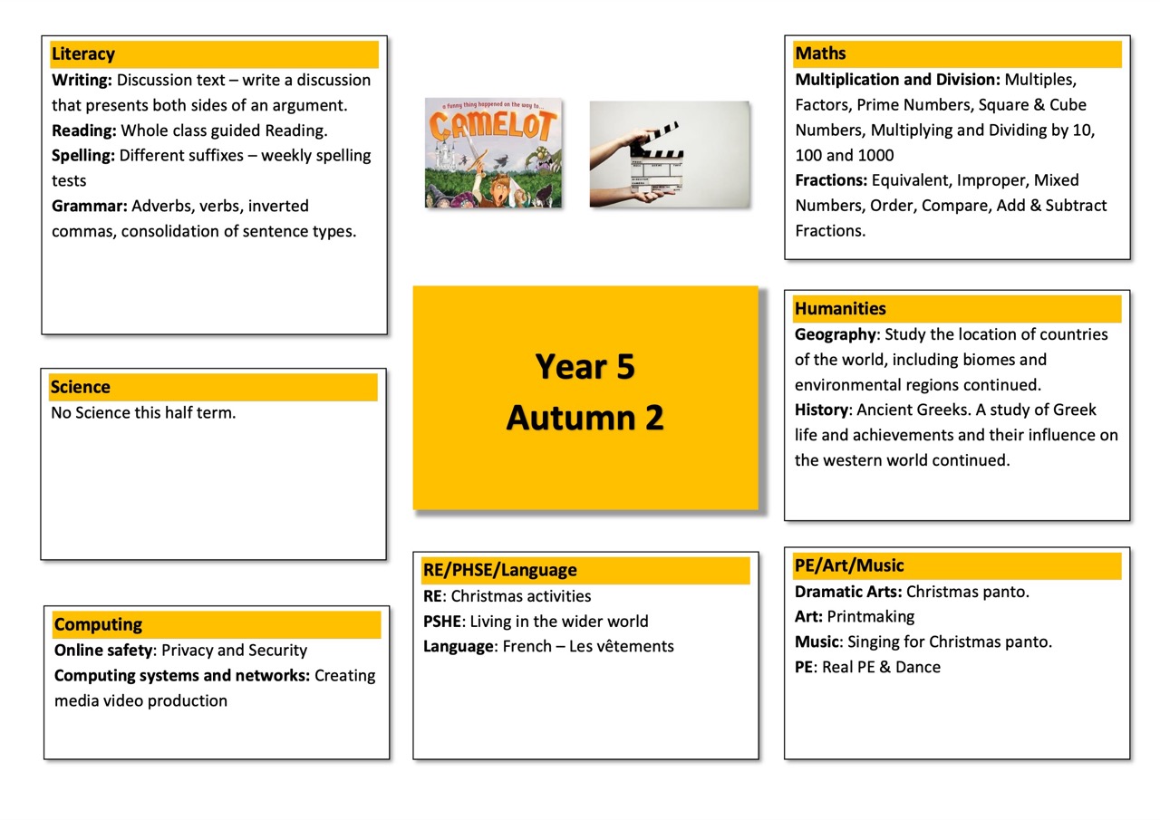 Our Christmas performance this year was: A Funny Thing Happened On The Way To Camelot. The show was a humorous rendition of the story of King Arthur and his quest to find Camelot with lots of funny lines, songs, dances and crowd participation throughout. Years 5 & 6 worked together and we really enjoyed making it – we hope the audience enjoyed it too. Below are just a few snapshots of the show. As you can see, our play included some brilliant costumes (thanks parents). We also hope you likes the dame’s jokes! “We’ll you soon – ta-ta!”