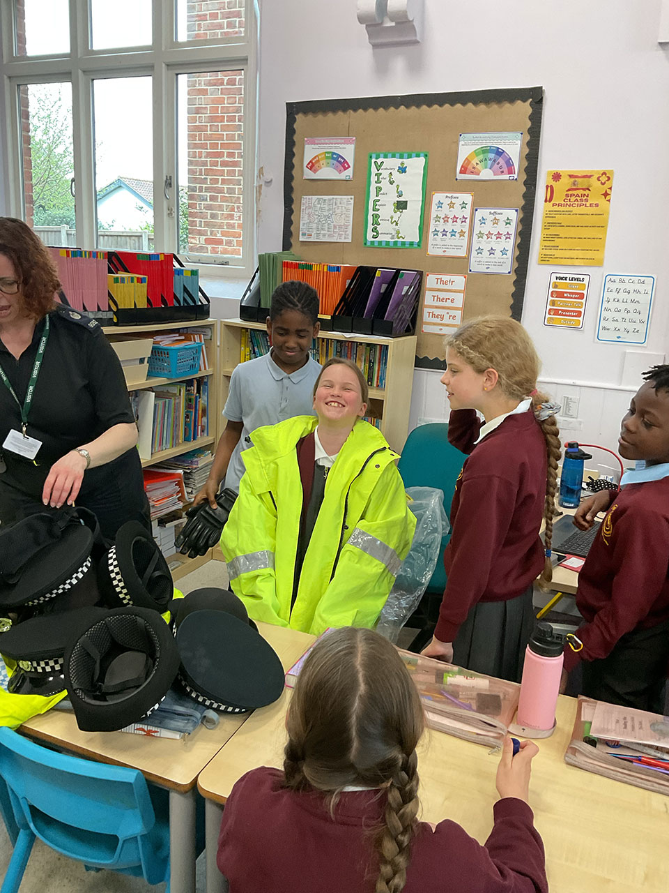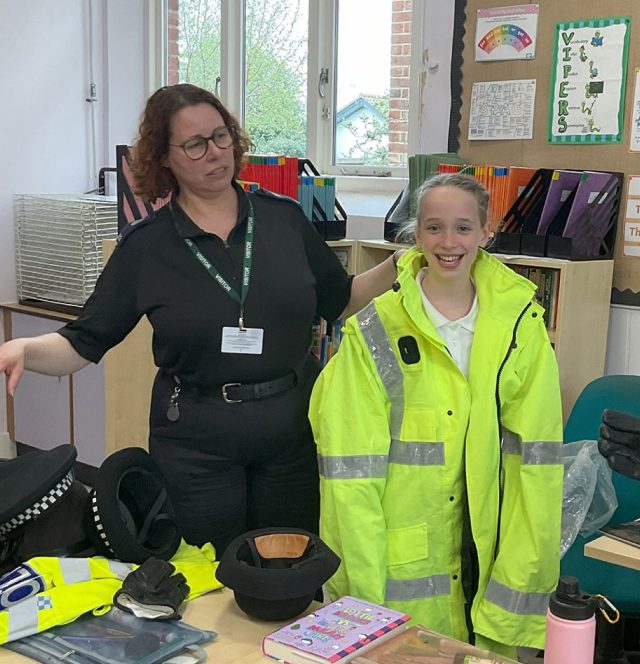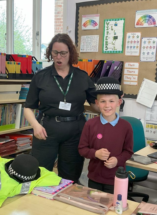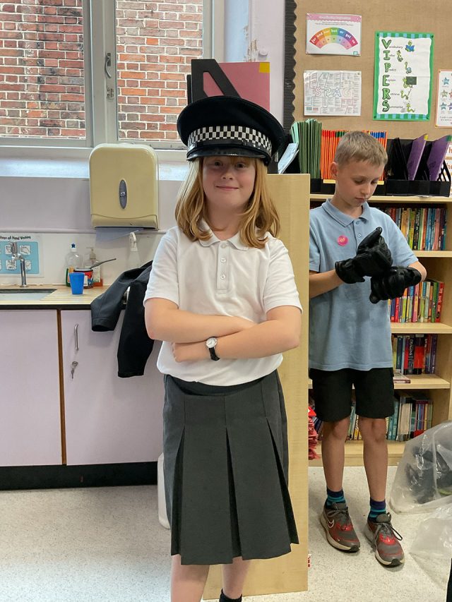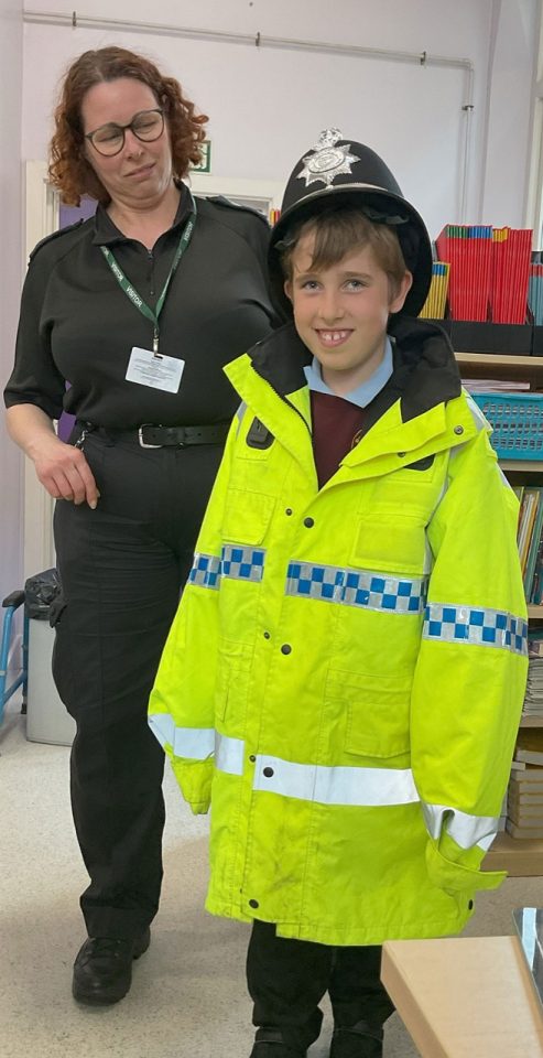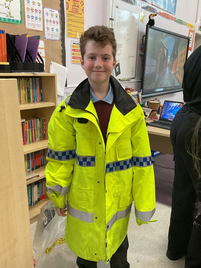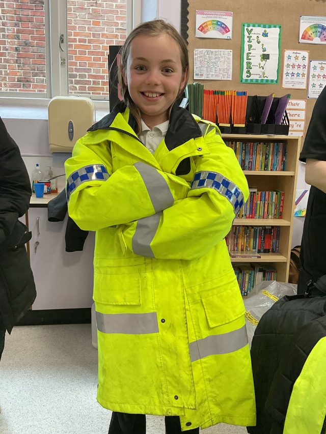 On Wednesday 15th April, we had a police constable – PC Hayley McNeil – come to the school to give us some facts about being a police officer. She let us wear some equipment and we got to ask lots of questions. We got to try on some equipment such as; police coats, hats, gloves, and utility vests. She told us that the age you are allowed to be arrested is 10 years and that you are allowed home alone when your parents think you are responsible enough to handle an emergency. Pc McNeil has lots of responsibilities in her job such as preventing crime, keeping people safe, being a first aider, a social worker, a coach, and many more.
