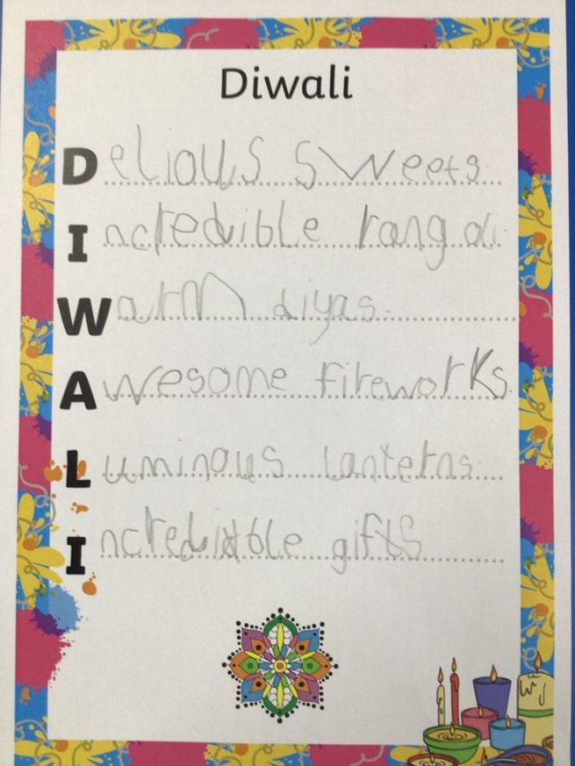 In Denmark Class, we have been learning about Hinduism in RE. With Diwali celebrations happening this week, we enjoyed a whole day of activities learning more about Hindu traditions. We made Diwali sweets, clay diya lamps, rangoli artwork and tried traditional dancing. We used all we had learnt to complete brilliant acrostic poems.